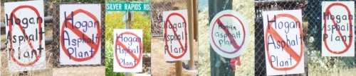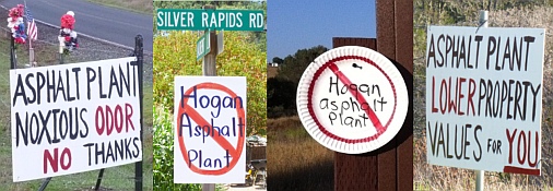 "No Hogan Asphalt Plant" signs on Silver Rapids Road